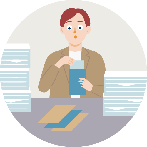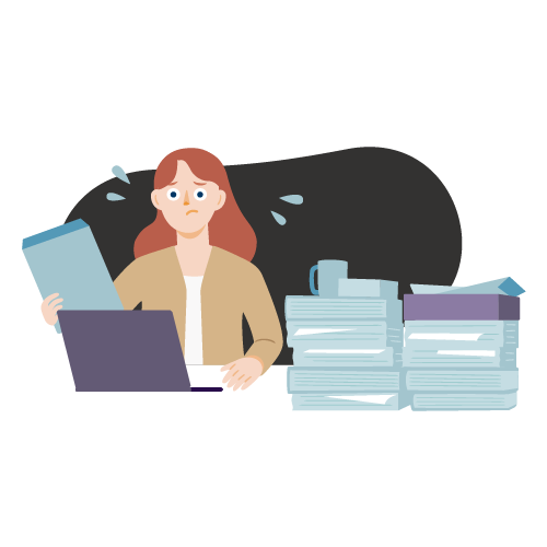 日々の業務の忙しさや、複雑な作業に取り組むシーンを中心に描いたイラストです。SmartHRを導入することで解決したい、課題や困っていることを表現する際に利用してください。