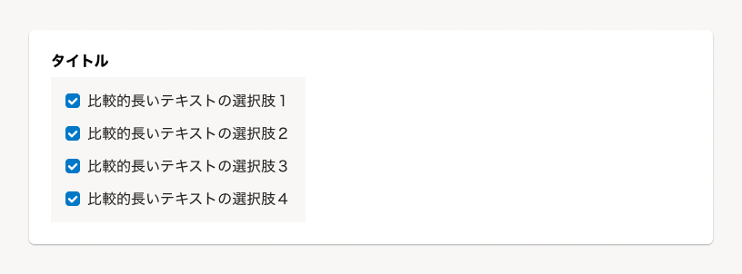 ただし、選択肢の文字が長くなる場合は縦並びを検討します。