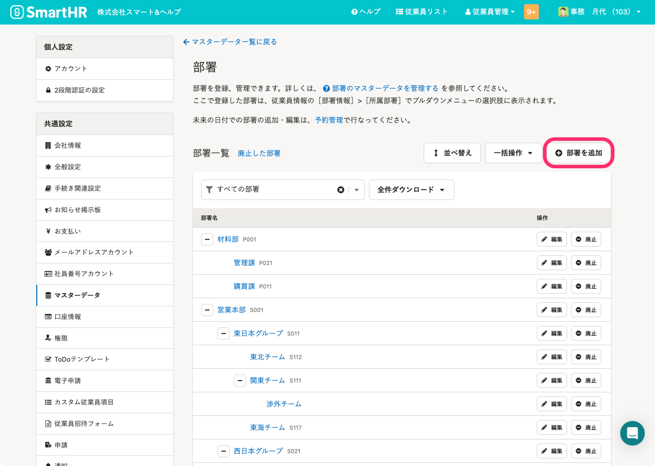 SmartHRの画面のスクリーンショットで操作の位置を示す場合は下記のように書きます。