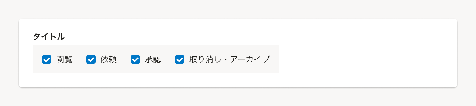 複数選択パターンは、1つの操作権限項目に対して複数の設定項目の有効・無効を個別に指定できる場合に使います。