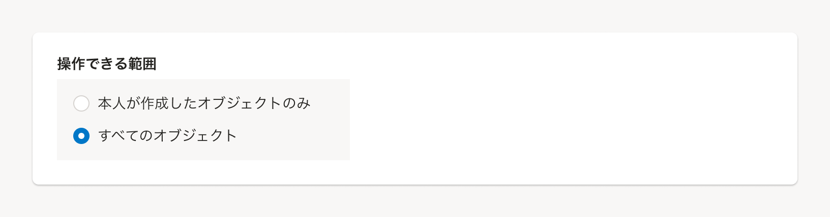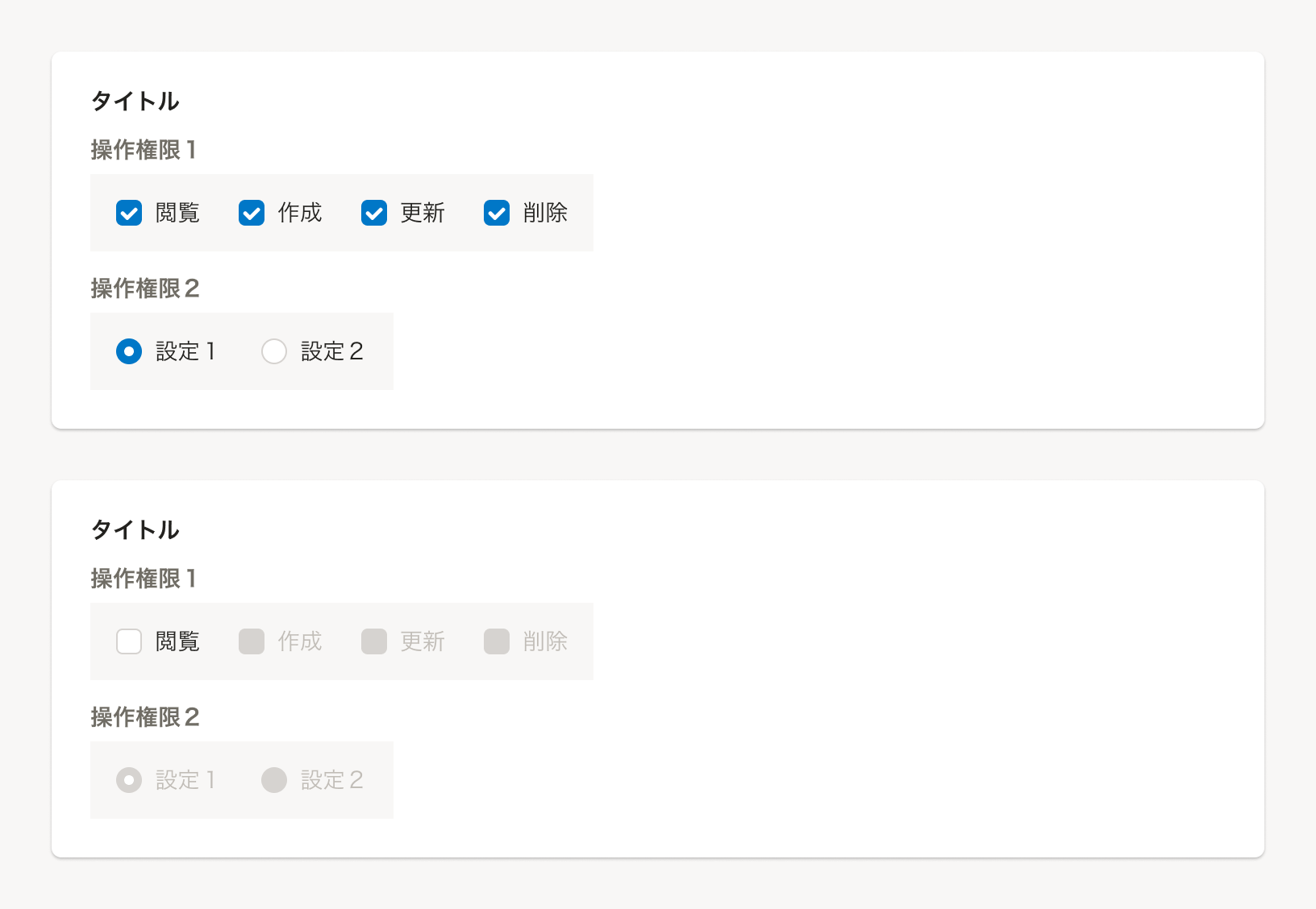 特定の操作権限に対して、「できる」または「できない」の2択で選択するパターンです。