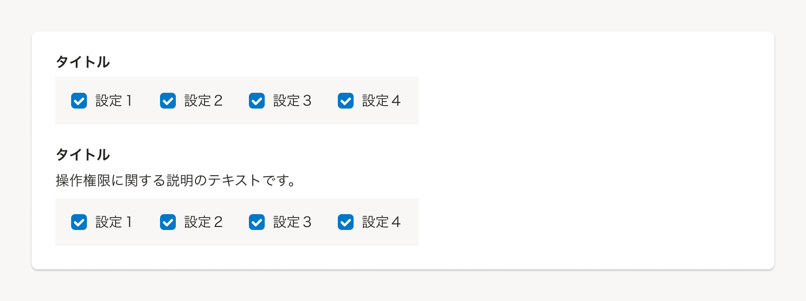 同じ形式の操作権限項目が複数ある場合は、近接する操作権限項目にあわせて幅を揃えることを推奨します。