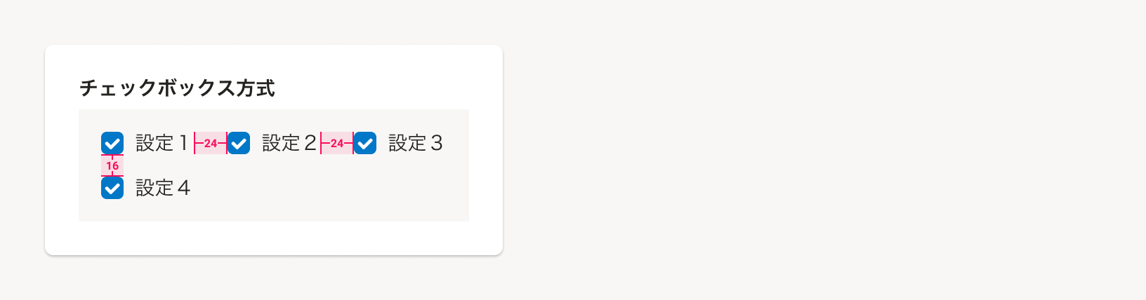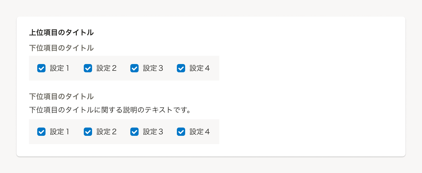 - 任意の数の設定項目を同時に有効・無効にできる場合は、チェックボックスを使います。