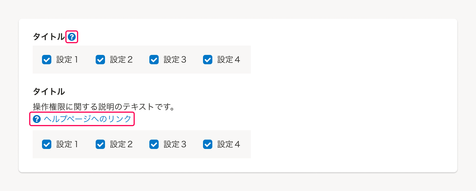 より詳細な内容の説明が必要な場合は、Iconの使い方を参照してヘルプページへのリンクの挿入を検討してください。