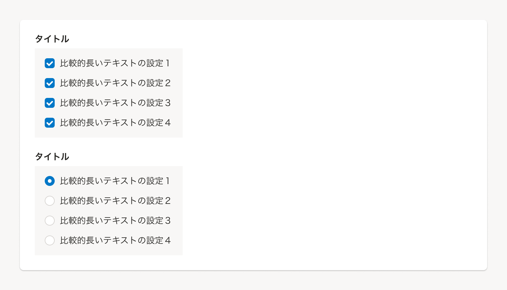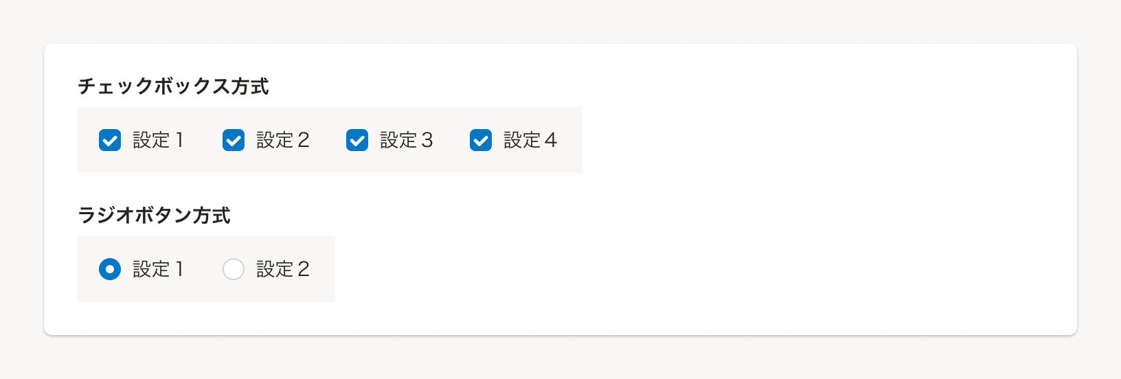 状況に応じて、チェックボックスやラジオボタンを使い分けます。