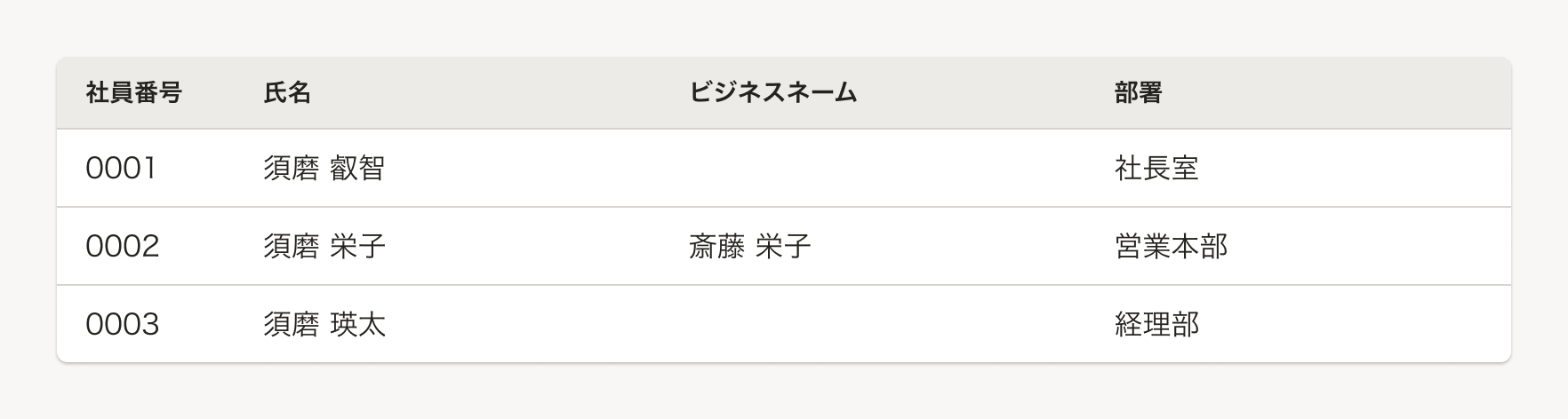 データテーブルや定義リストにおいて、値がない項目は空白表示とします。