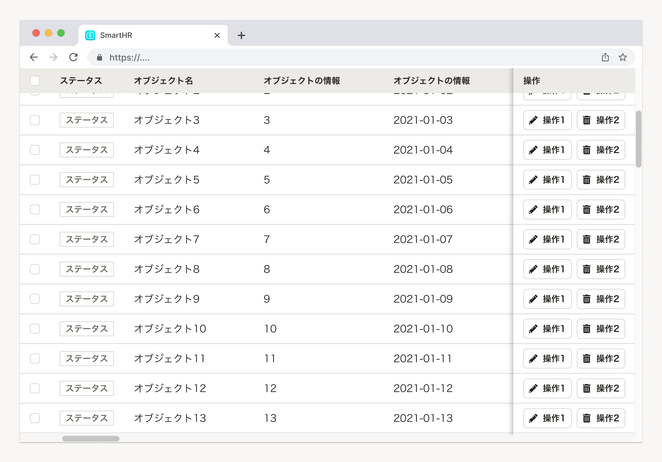 SmartHRに頻出する、表形式で一覧表示するUIのパターンをまとめています。